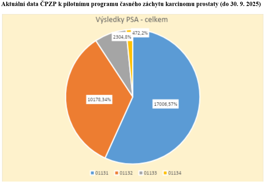 „Screeningový program ministerstva zdravotnictví na vyšetření prostaty běží od loňského ledna. Dosud se v něm nechalo preventivně vyšetřit na 30 tisíc našich pojištěnců. Z nich 17 tisíc mělo hladinu prostatického specifického antigenu (PSA) v pořádku. Přibližně třetina z celkového počtu vyšetřených měla hladinu PSA lehce zvýšenou. U 7,7 procenta ze všech vyšetřených, konkrétně u 2 304 lidí, zjistili lékaři rizikové množství PSA. Karcinom prostaty byl následně zachycen u 256 mužů,“ konstatuje mluvčí ČPZP Elenka Mazurová.