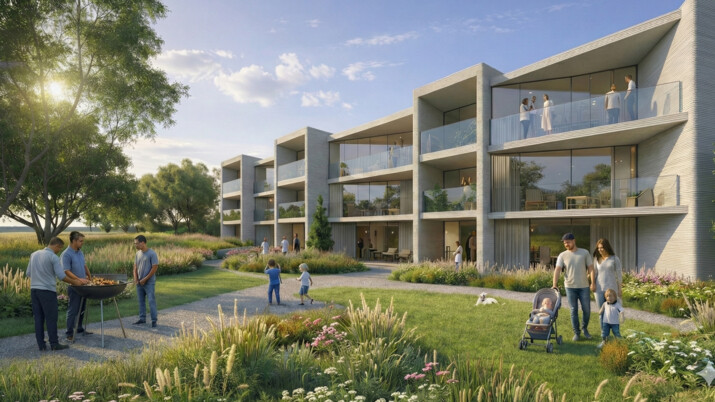 Urbanistický i architektonický koncept vychází z motivu meandru – jak z polohy pozemku nedaleko meandru řeky Odry, tak z organické křivky 3D tisku. Z ptačí perspektivy působí celý návrh jako souvislý meandr, který se vine územím a vytváří měkkou hranici mezi zástavbou a krajinou. Tento organický přístup se nepropisuje pouze do podoby zástavby, ale také do samotné filozofie projektu, která staví na schopnosti bydlení přizpůsobovat se lidem a jejich potřebám. „Značná část veřejnosti může 3D tisk ve stavebnictví stále vnímat jako něco experimentálního a vzdáleného představě běžného domova. Náš projekt ale ukazuje, že tato technologie dokáže velmi dobře a prakticky reagovat na reálné potřeby lidí – v různých životních fázích i situacích. Díky 3D tisku nemusí vznikat jeden univerzální typ domu, ale každý dům může být jiný. Nabízíme bydlení, které se přizpůsobuje lidem, ne naopak. A právě tato flexibilita, spolu s rychlým a efektivním procesem výstavby, může být zásadní pro budoucnost rezidenčního developmentu,“ sděluje Zuzana Bajgarová, ředitelka skupiny Antracit.